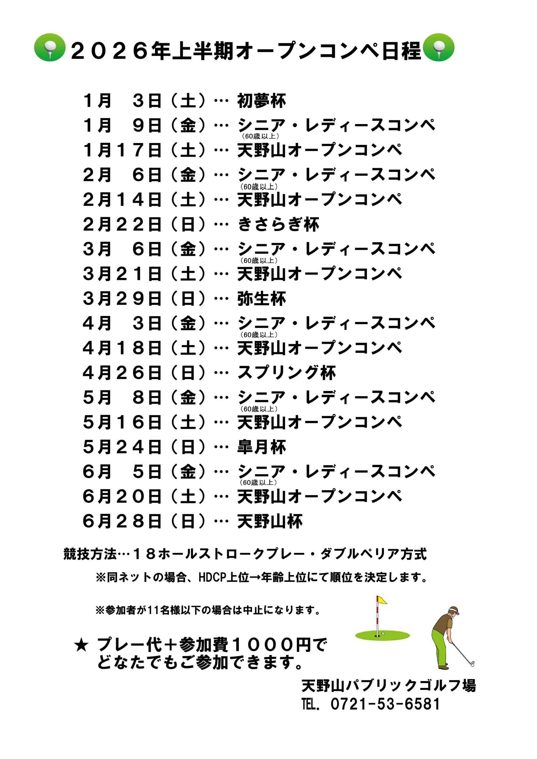 2026上半期オープンコンペ日程